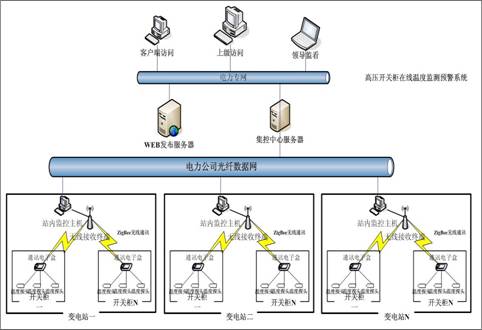 北京合眾普瑞科技有限公司結合電力行業的實際應用需要和多年的電力行業實時在線監測監控經驗,采用無線傳輸ZigBee技術和高精度數字式紅外測溫傳感器技術,研制出適合變電站高壓開關柜應用的實時在線溫度監測智能診斷預警系統。該系統既可獨立應用在一個變電站內通過計算機軟件實現溫度實時在線分析又可通過網絡把實時數據傳送各級集控中心組建市、縣級的大型監測監控系統,為有效監測高壓開關柜安全運行和變電站的智能化管理提供了非常有效的工具。